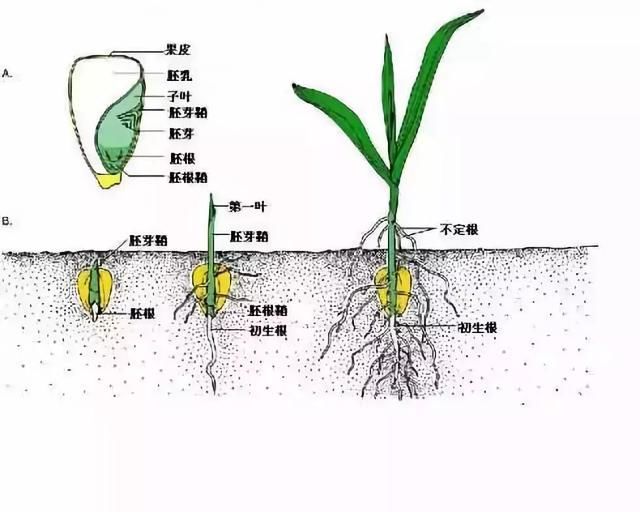 水、溫度、氧氣是種子發(fā)芽、出苗的三個(gè)最基本條件。玉米種子由兩部分組成,一部分是將來長(zhǎng)成植株的“胎兒”, 名稱叫胚;另一部分是供“胎兒”長(zhǎng)大的營(yíng)養(yǎng)物質(zhì),名稱叫胚乳。